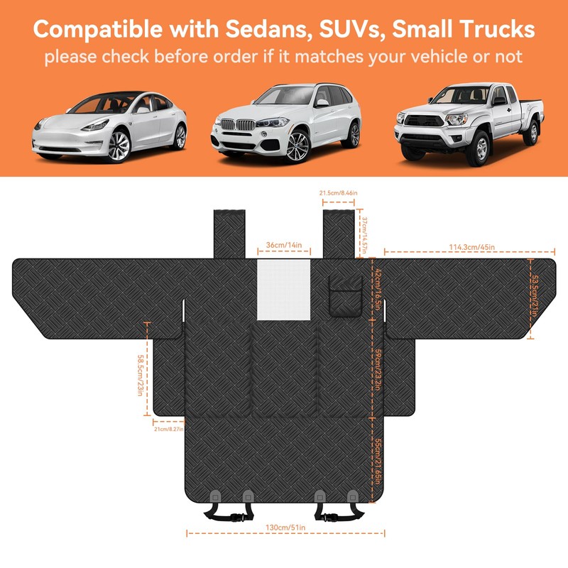 - Spacious & Stable Design with Reinforced Board- The extra-wide hardboard embedded in the rear seat creates a sturdy, expanded space for your dog to relax comfortably during rides. No sagging or sliding! Wexyldra premium back seat extender for dogs compatible with Sedan, SUVs & Small Trucks which provides ultimate protection & comfort for your friends
