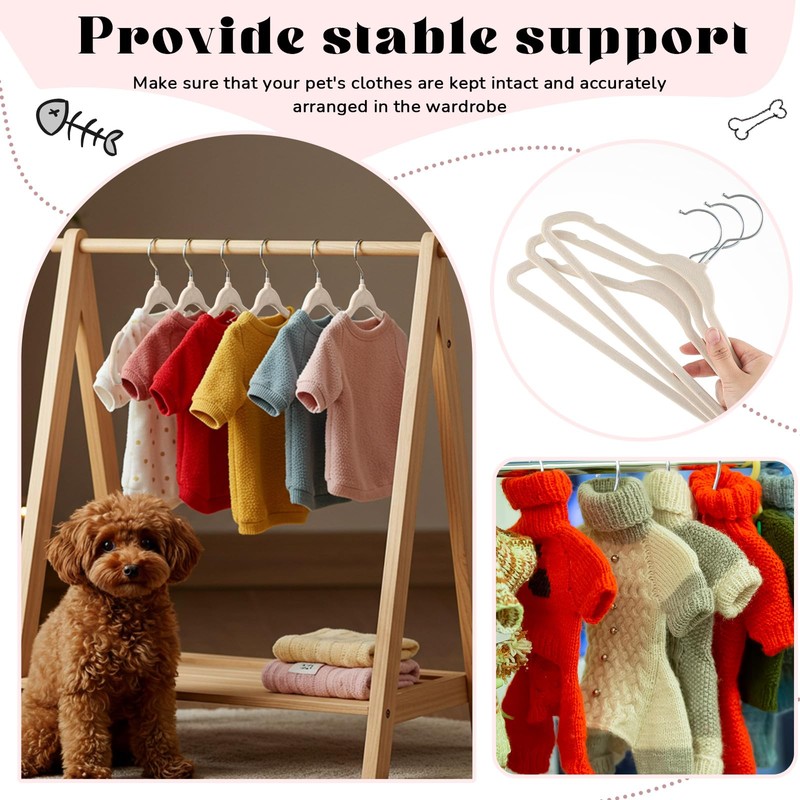 - Stable Support for PET Wardrobe: specifically designed for medium and small-sized pets, these hangers provide a secure support for various clothing items; With a width of 11 inches, they won't distort your pet's clothes; The entire hanger is wrapped in a velvet material designed for stability, preventing unnecessary slipping of your cat or dog's clothes; The 360 rotating hook allows you to easily find the clothes you need