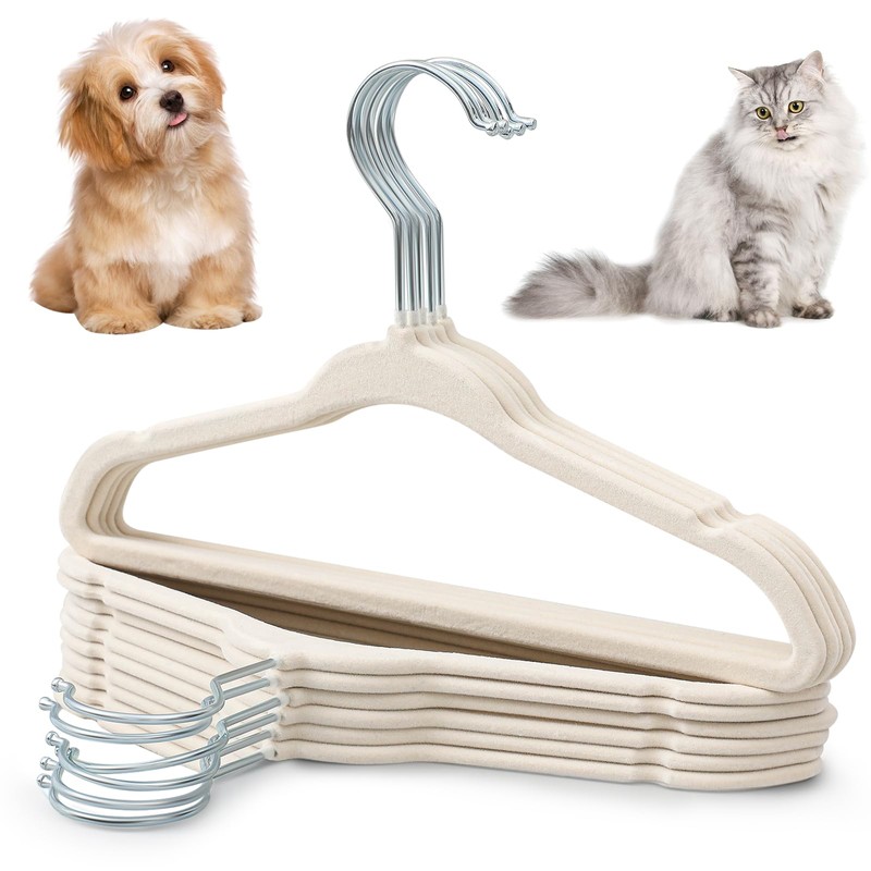 - Suit for PET: 12 high-density flocking hangers in a charming beige color; Each hanger measures 11.02 x 7.09 inches/ 28 x 18 cm, sized for small to medium pet clothing; Tips: please measure the shoulder width of the dog's clothing in the laid flat state before purchasing; This product is more suitable for pet clothes with a shoulder width of ≤ 26cm