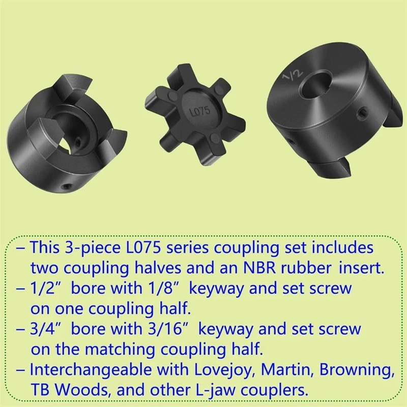 WEZCHUGHAOL 1/2" to 3/4" L075 Flexible 3-Piece L-Jaw Coupling Set & Buna-N NBR Rubber Spider Replacement Part for Log Wood Splitter Hybrid Equipment