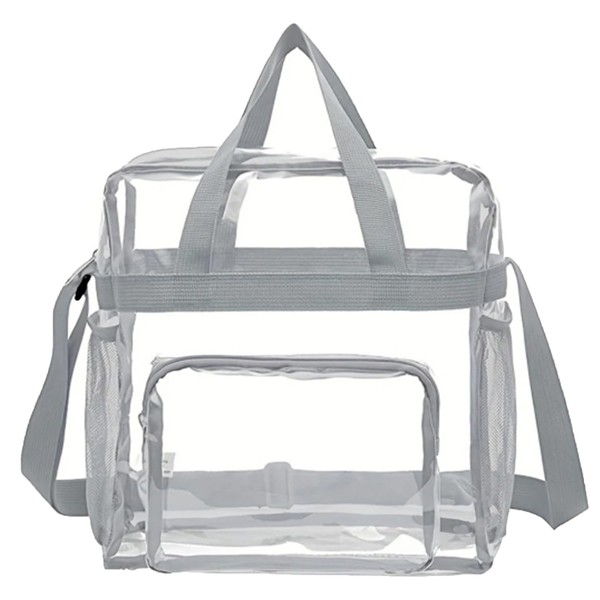 WEZCHUGHAOL Clear Tote Bag, Stadium Approved Bags for Concerts with Zipper Pocket, Stadium Bag with Adjustable Shoulder Strap (Gray)