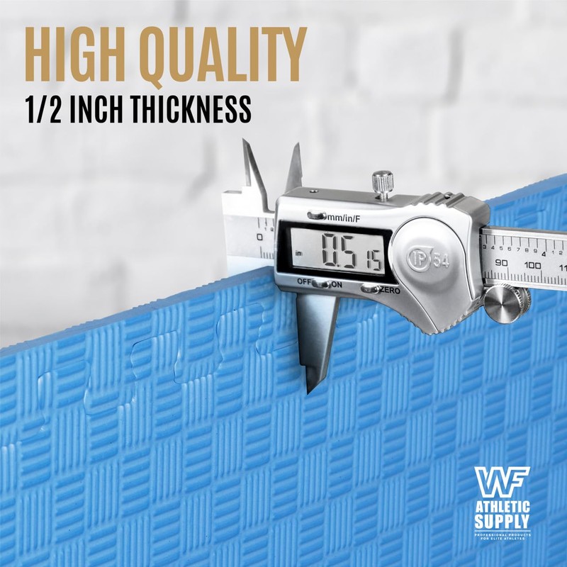 WF Athletic Supply 96 SQ.FT Tatami Pattern 1/2-Inch Thickness Interlocking Exercise Foam Mats, Extra Thick Eva Foam Flooring Tiles, Gym Fitness Equipment Mat, Home Protective Flooring Cushion, Blue