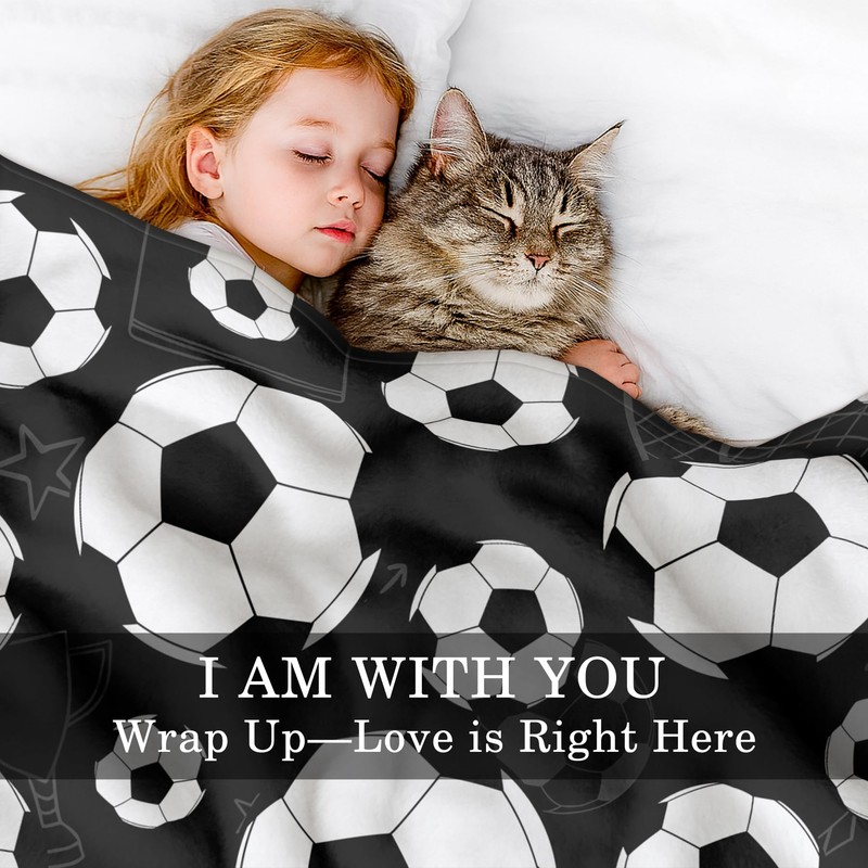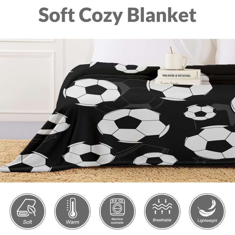 WFGUO Soccer Blanket, 40" x 50" Lightweight Soft Throw, Gifts for Soccer Lovers, Black