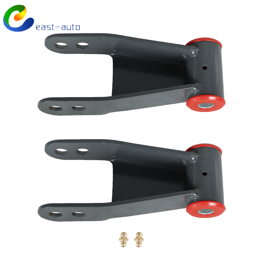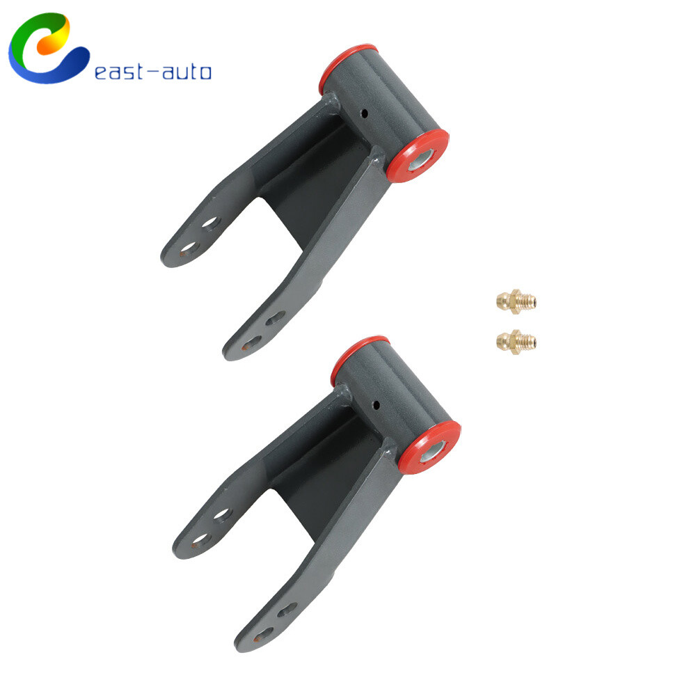 - Items Included: 1"-2" Drop Kit Adjustable Leveling Lowering Shackles