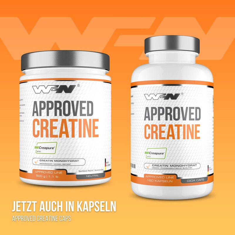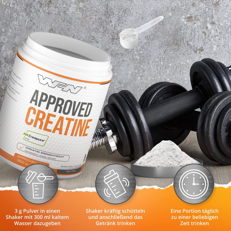 - Creapure Creatine – The WFN Approved Creatine contains pure Creapure Creatine Monohydrate from the manufacturer Alzchem. Creapure is considered the world's purest creatine with a proportion of over 99.9%.