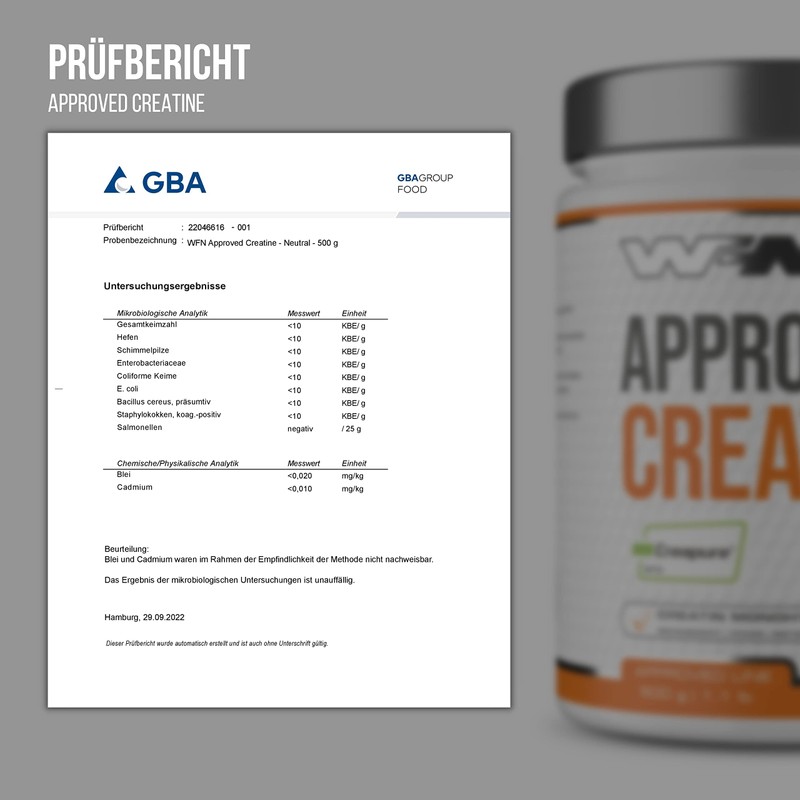 Like every supplement at WFN, the Approved Creatine was developed by sports and nutrition scientists and manufactured and bottled in Germany under strict quality guidelines. In addition, all products are regularly tested by an independent laboratory for their purity and safety.