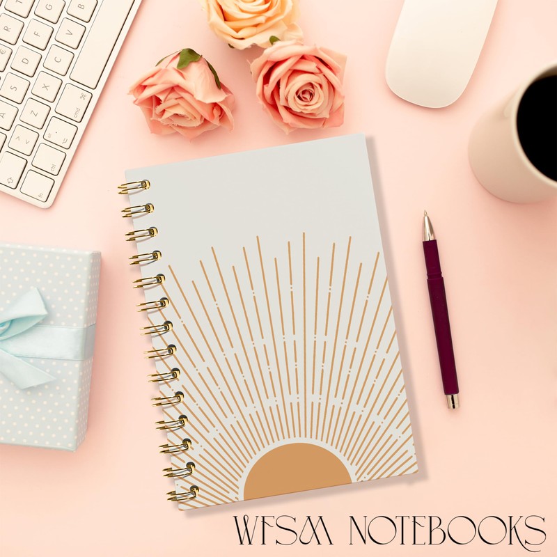 WFSM Boho Notebook - Preppy Notebooks, Boho Sun Journal, Green Notebook,Spiral Notebook, 5.5x8.3 Inches