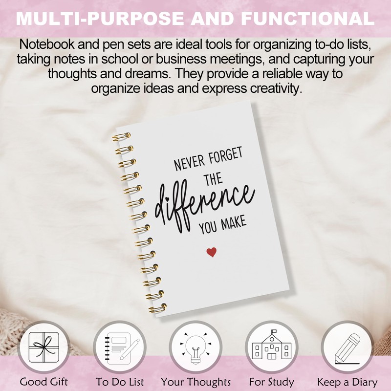 WFSM Never Forget the Difference You Make Notebook Journal, Appreciation Gifts for Coworkers Teacher Mentor Boss Coach Retirement Leaving, Hardcover Spiral Notebooks for Work Note Taking, 5.5x8.3