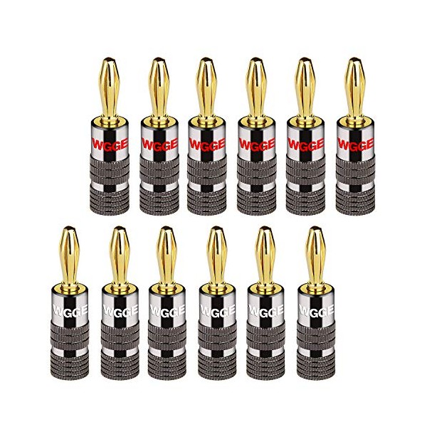 WGGE WG-029 Banana Plugs Audio Jack Connector, 24k Gold Dual Screw Lock Speaker Connector for Speaker Wire, Wall Plate, Home Theater, Audio/Video Receiver, and Sound Systems ((6 Pairs (12 Plugs)))