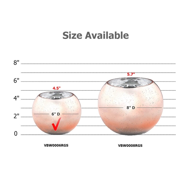 WGV Bowl Glass Vase, Diameter 6", Height 4.5", Open Width 4", (Multiple Choices) Rose Gold with Spot Bubble Planter for Wedding Event Home Decor, 1 Piece (VBW0006RGS)