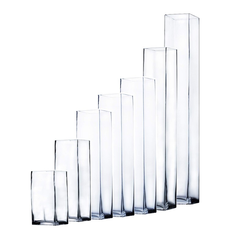WGV Tall Square Vase Glass Block Bulk, Length 4", Height 20", Clear Floral Container, Masterpiece, Planter Terrarium for Wedding Party Event, Home Office Decor, 6 Pieces