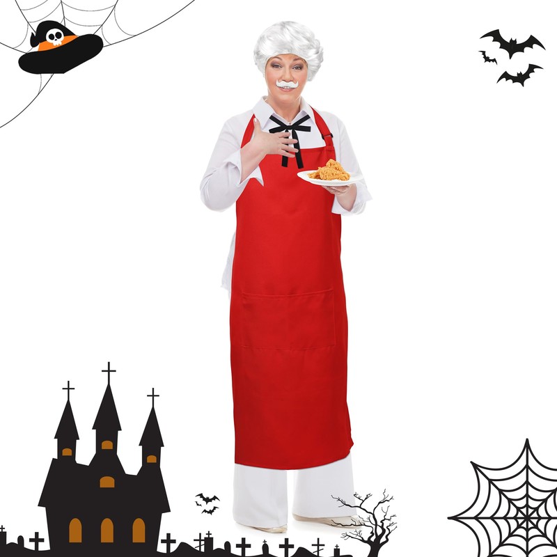 - One-Size-Fits-Most: designed to fit most adults, this costume set prioritizes comfort and ease of use. The bow tie, apron, and cane ensure a secure fit, while the lightweight glasses, mustache, and faux eyebrows are easy to wear without irritation, the fake fried chicken props add a playful touch