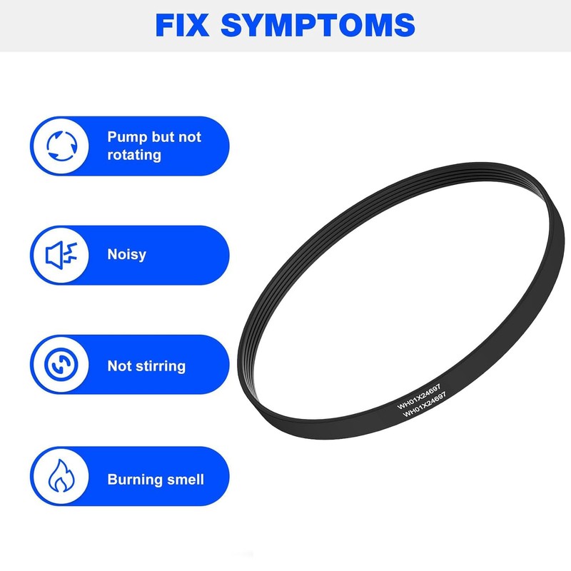 - 【Easily Install 】The drive belt WH01X24697 connects the drive motor to the drive system and quickly get your washer back to work within few minutes, avoid the hassle and expense of a service call. (TIPS:A new belt will be slightly smaller than the drive pulley, this is normal.)