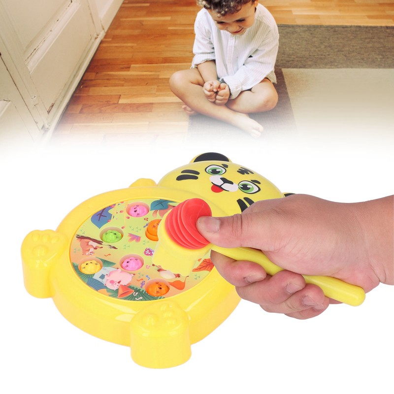 Whack A Mole Game 360° Rotation Cartoon Tiger Image Battery Powered Plastic Hammer Toys for 3 Years Old +