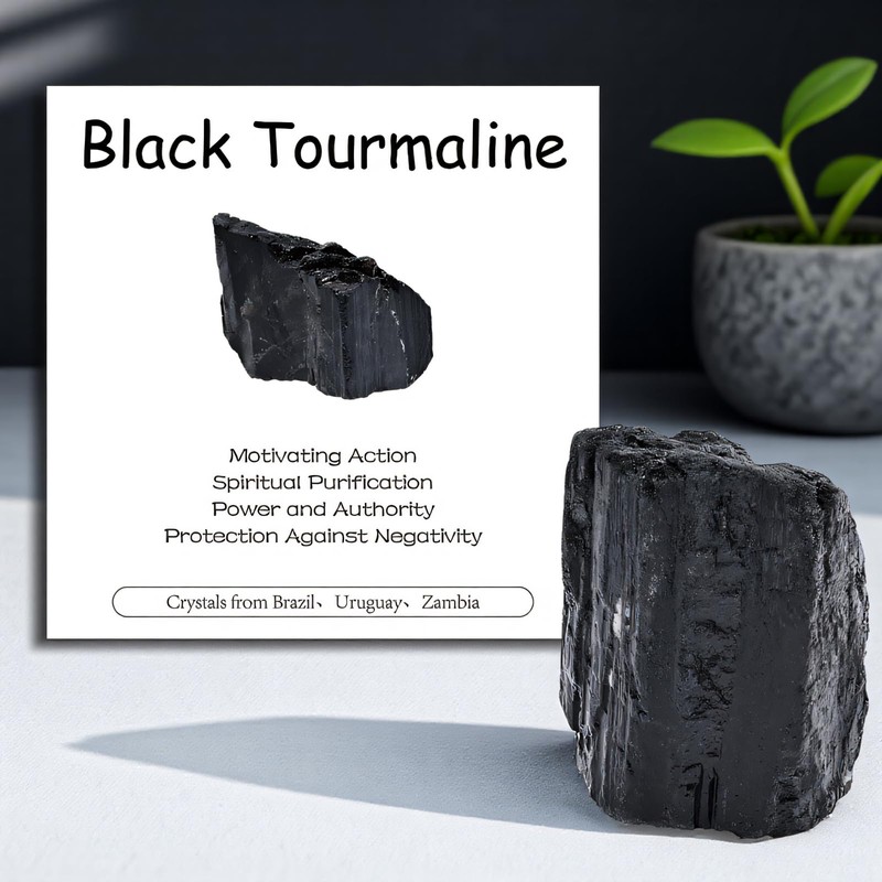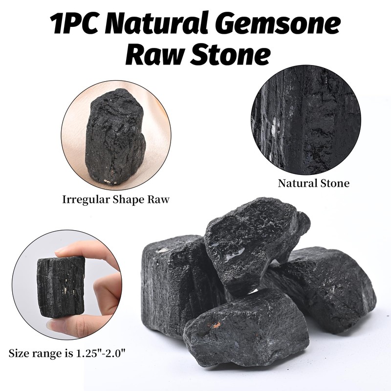 WHAL&YUNE Black Tourmaline Raw Stones 1PC,Gemstones Raw Stones and Healing Crystals,Hand Carved Natural Pocket Raw Stone for Decoration Tumbling,Garden(1.18"-1.97")