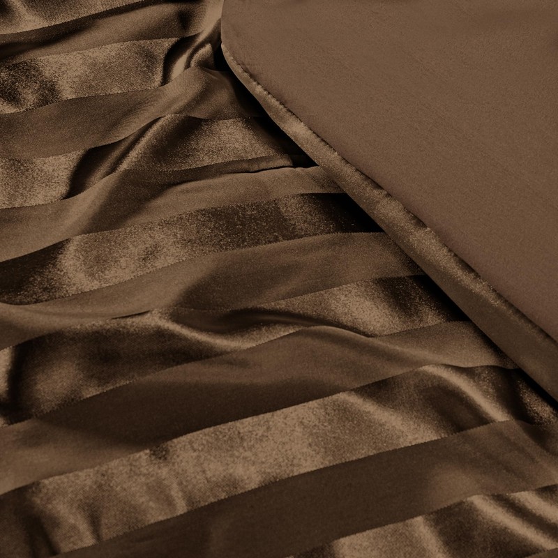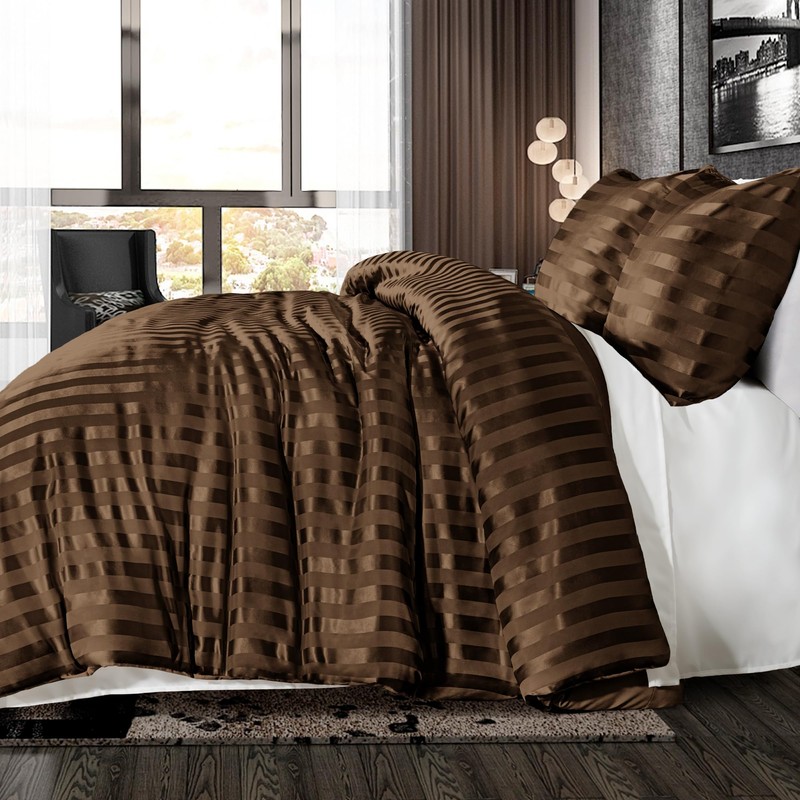 Whale Flotilla 3-Piece Reversible Silky Soft Queen Comforter Set, Luxury Stripe Satin Comforters Full Size Bedding Set with 2 Satin Pillowcases, Lightweight Duvet Set for All Seasons, Brown