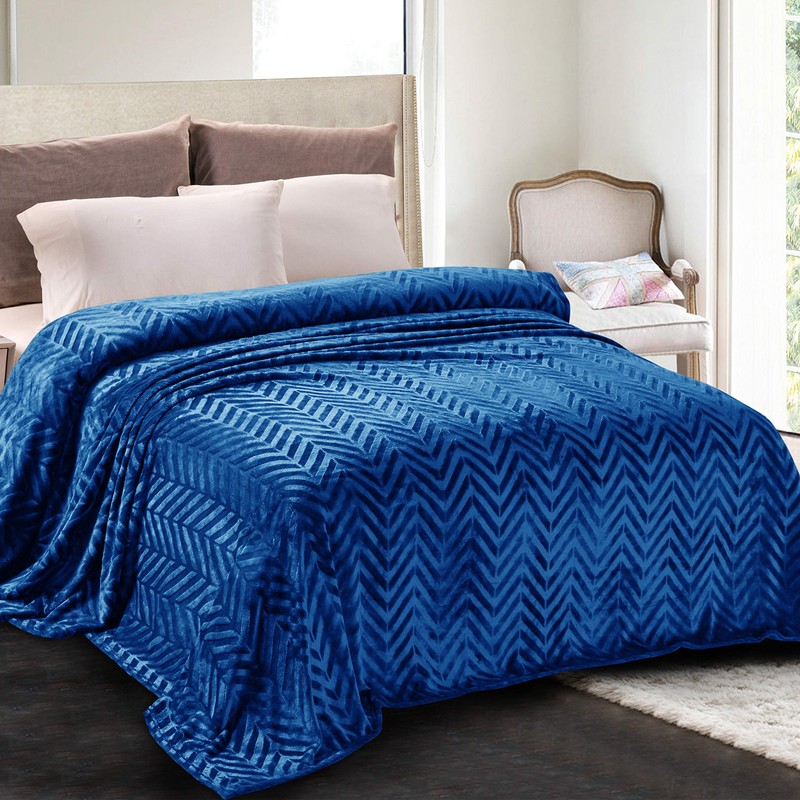 Whale Flotilla Flannel Fleece Twin Size Bed Blanket, Twin XL Lightweight Breathable Soft Bedspread Plush Fluffy Coverlet Chevron Design Decorative Blanket for All Season, 90x66 Inch, Royal Blue