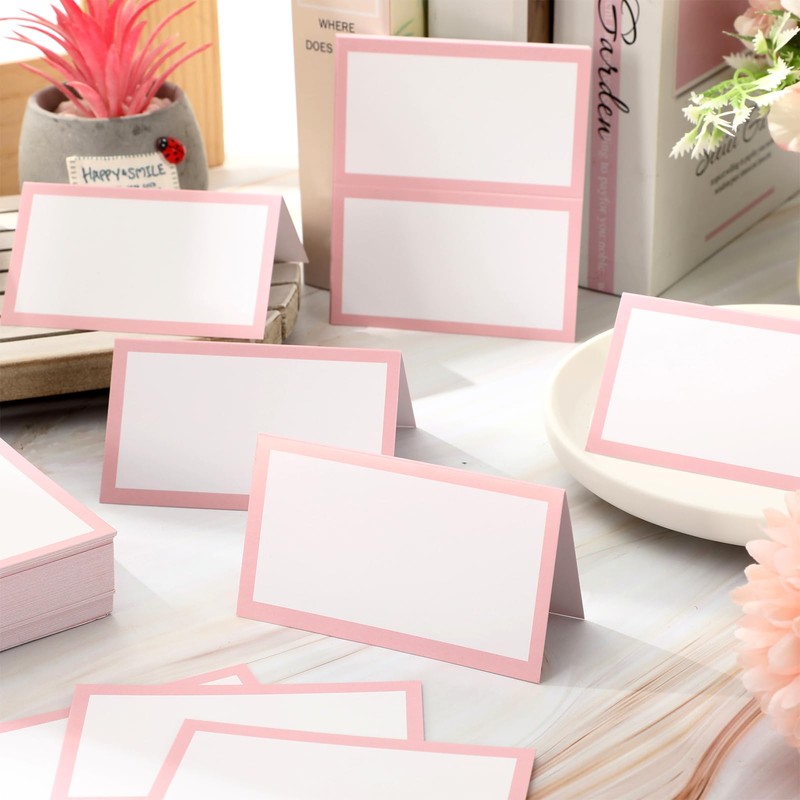 100pcs exquisite tented name cards with blush pink borders, sufficient quantities that are enough to meet your various of needs.