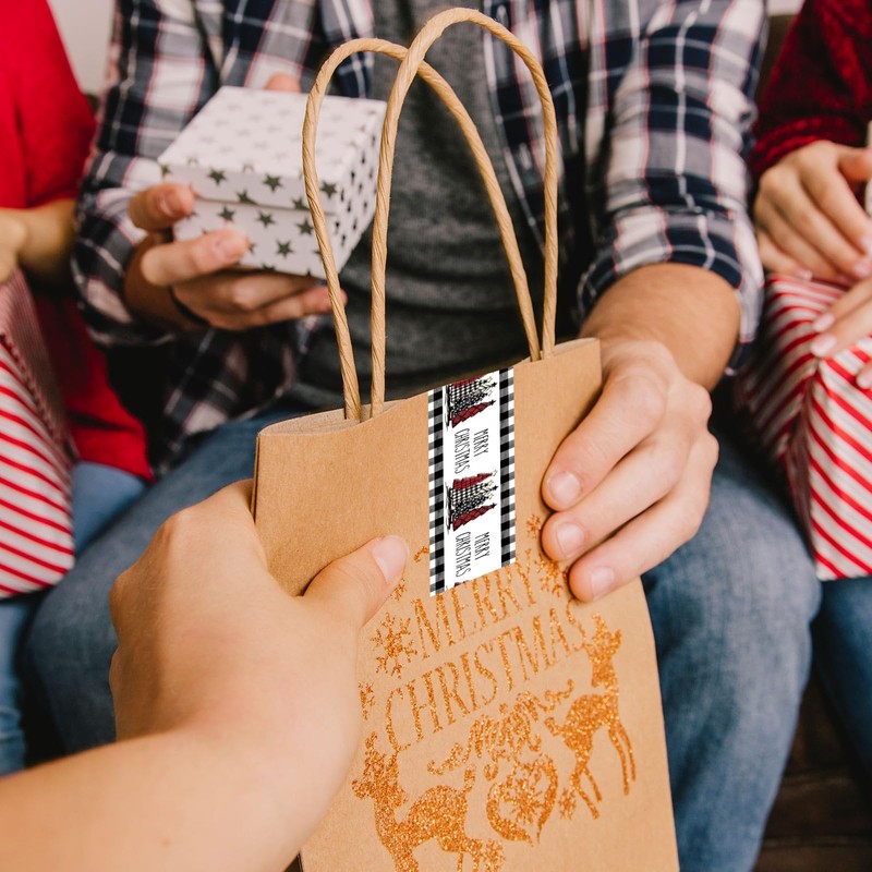 The packing tape printed with classic Christmas tree and plaid patterns, delicate and rustic, perfect packing decorations.