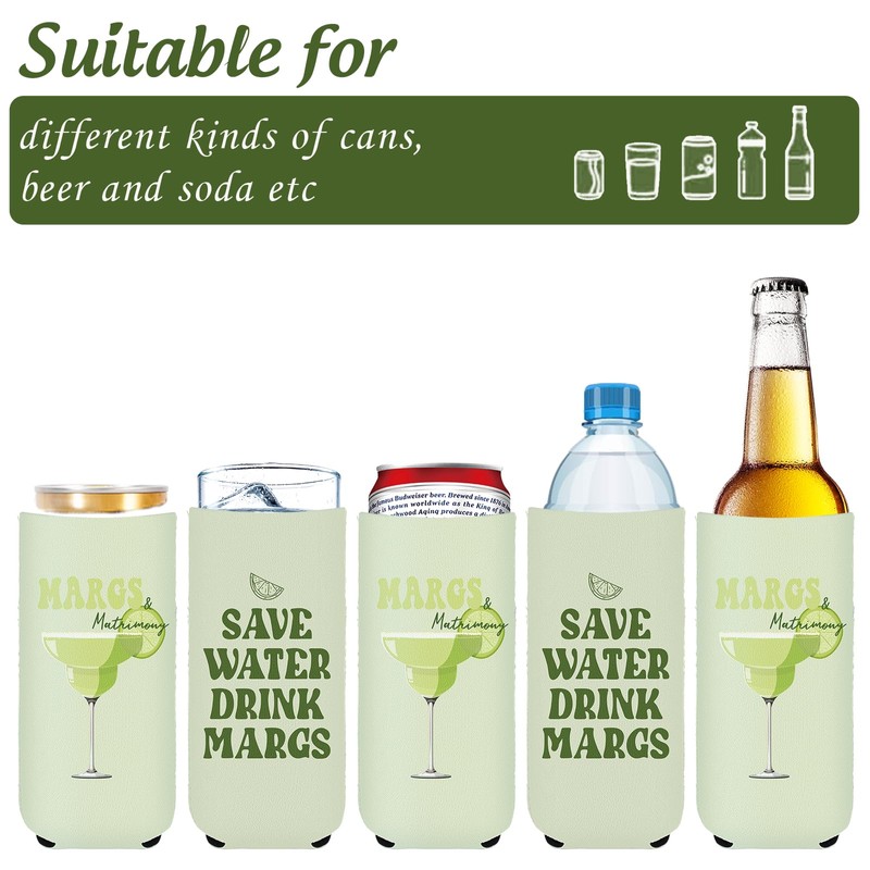 Whaline 12Pcs Margarita Party Slim Beer Can Sleeve 12Oz Lime Margs and Matrimony Can Cooler Cover Double-Printed Neoprene Insulated Thermocooler for Bachelorette Party Drink Decor