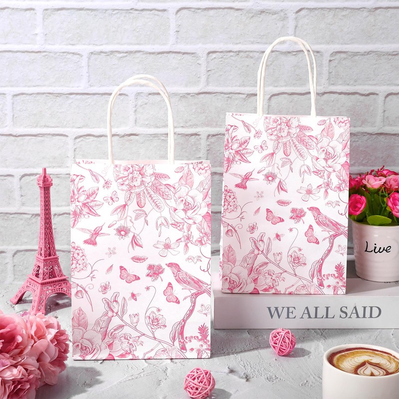 • Elegant Design: Our paper gift bags are patterned with floral and birds mainly in pink and white, chic and attractive, will fit to various occasions