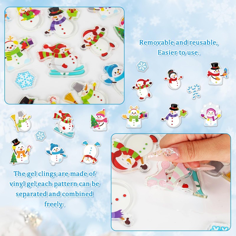 - Winter Design: Our thick gel clings are designed in winter theme, patterned with cute snowmen in different colors and styles, super cute and lifelike, they can enhance the winter atmosphere at once, add a joy to your holiday.