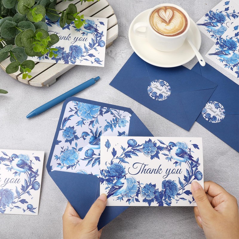 - You Will Get - 24pcs thank you cards, 24pcs envelops and 24pcs stickers are included in the package, printed with blue floral and magpie patterns, well meet your various needs and express your sincere gratitude.