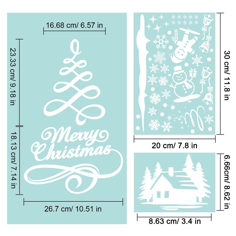 • Rich Christmas Elements – The Christmas window decals are designed with classic Christmas elements and warm words, Christmas tree, snowflake, reindeer… and have words Merry Christmas, all with white color, unique and attractive, they can be the best window decorations during the winter and Christmas holiday.