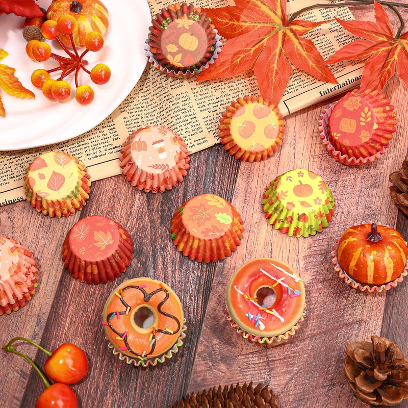 - Fall Cupcake Liners: Featuring a fall theme with patterns of pumpkin, maple leaves, etc., these cupcake liners are perfect decorations for party table