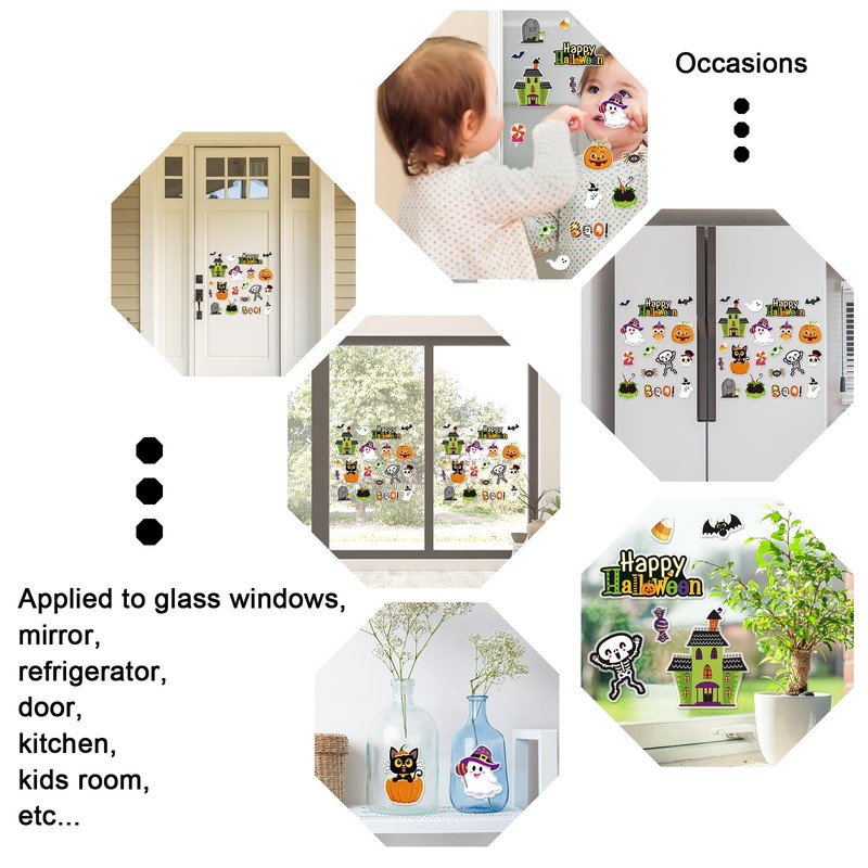 - Widely Used: Our thick gel clings are perfect for home, classroom, room window decoration, and also can be applied to car windows, fridge and wall, they are nice decoration to Halloween party, trick or treat party, birthday, etc., leave everyone a joyful and pleasant memory