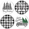 Whaline 4Pcs Merry Christmas Coasters Black White Buffalo Plaid Drink Coasters Xmas Tree Truck Reindeer Absorbent Ceramic Coasters Winter Cup Mat for Home Kitchen Table Decor