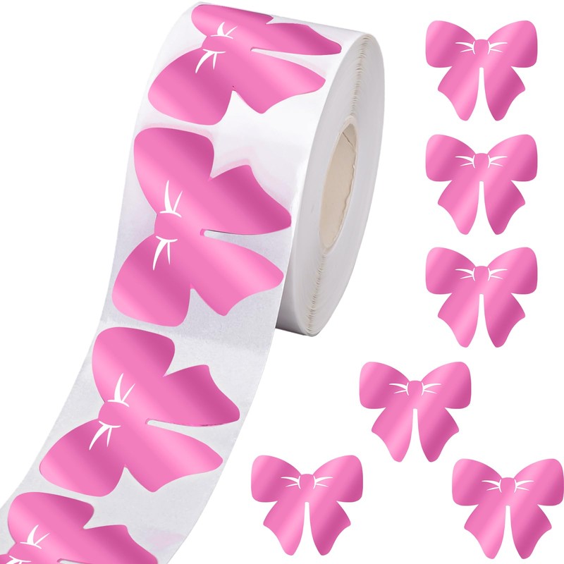 Whaline 500Pcs Pink Bow Stickers Roll Foil Seal Stickers Self-Adhesive Label Decals for Craft Envelope Card Party Favor Decor