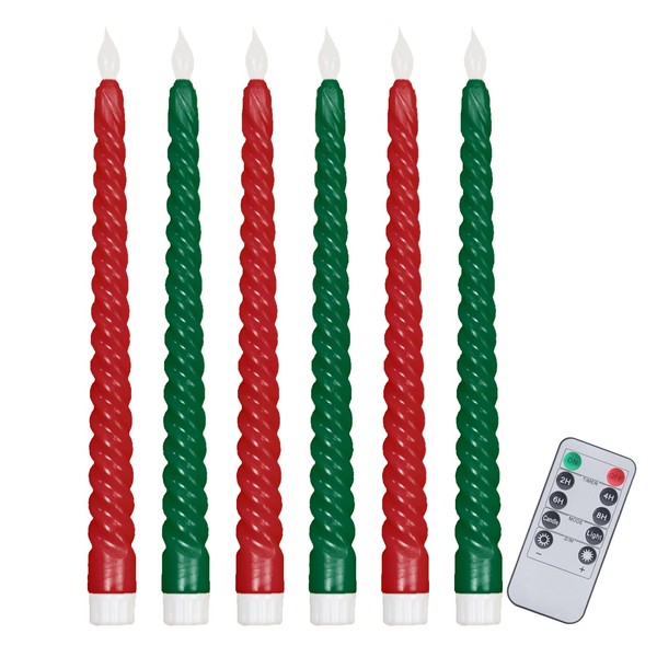Whaline 6 Pcs Christmas LED Flameless Spiral Candles with Remote Battery Operated Taper Candles Xmas Red Green Electric Candle Boxed for Party Home Table Centerpiece Decor