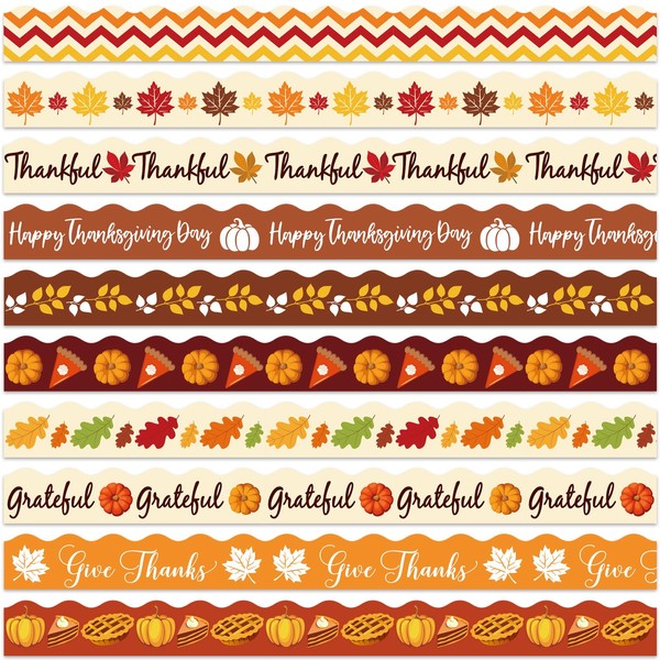 - Diverse Designs - The bulletin borders take fall and thanksgiving as the theme, printed with various seasonal and holiday elements, pumpkin, maple leaves, pumpkin pie, letter grateful, thankful, happy thanksgiving day, etc., wonderful for decoration.