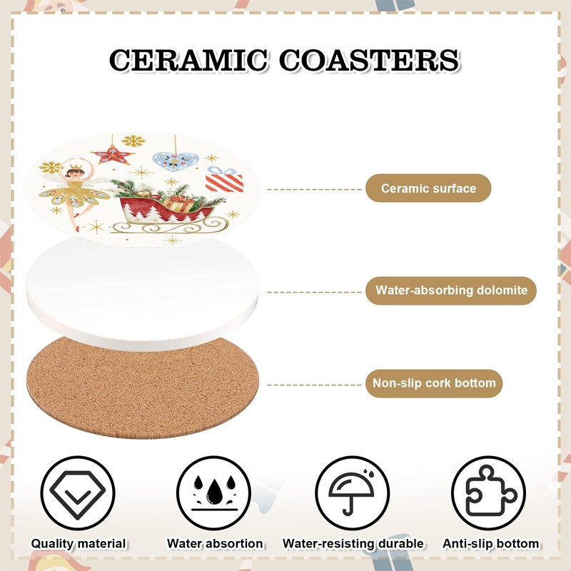 - Christmas Theme - Our ceramic coasters are featured with Christmas popular elements, patterned with nutcracker and Christmas tree, printed with festive words, nice and perfect for dining table decor to enhance holiday atmosphere.