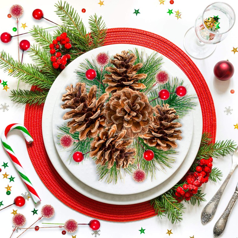 • THE PACKAGE INCLUDES - 20pcs natural pinecones, 100pcs red berries and 10pcs pine branches, sufficient to meet your needs for crafts and holiday decoration.