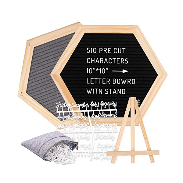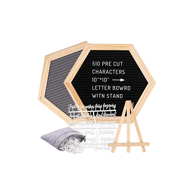 Whaline Double Sided Felt Letter Board Kit with 510 Letters Month Wooden Stand Felt Bag Felt Letter Board Hexagon Felt Letter Board for Home Baby Nursery School Classroom Teaching Tool Office
