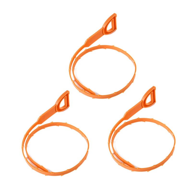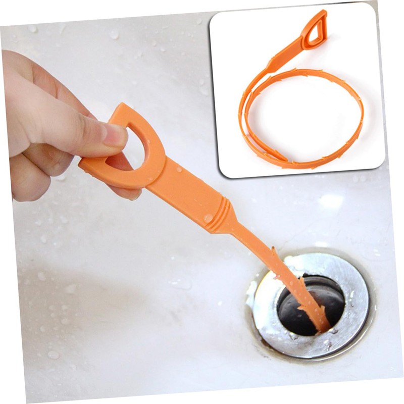 unclogger The item is a pack of 3pcs drain cleaning tools made of ABS plastic.Drain Clog Remover - enough to bend in many kinds of strainers and .Drain Cleaning Tool - Flexible barbed wand can easily grab & remove clustered hair, food, garbage, and other obstructions easily.drain remover - Durable, flexible and functional: Easy to clear slow-moving or clogged drains.drain auger - Size: About 52 * 4 cm/ 20.hair clog removal tool 47 * 1.plumbing tools 57 inch(L*W). - Material: ABS plastic. This drain tool can bend in many kinds of and strainers, and is for shower, kitchen, bathroom & utility sinks and bathtubs. Features - Color: Orange. It can help you remove quickly hair, garbage or food in kitchen, bathroom, wash basin, drain, bathtubs and showers. - Widely used for your bathrooms, sinks, tubs, dredge , clean drain, sewers etc