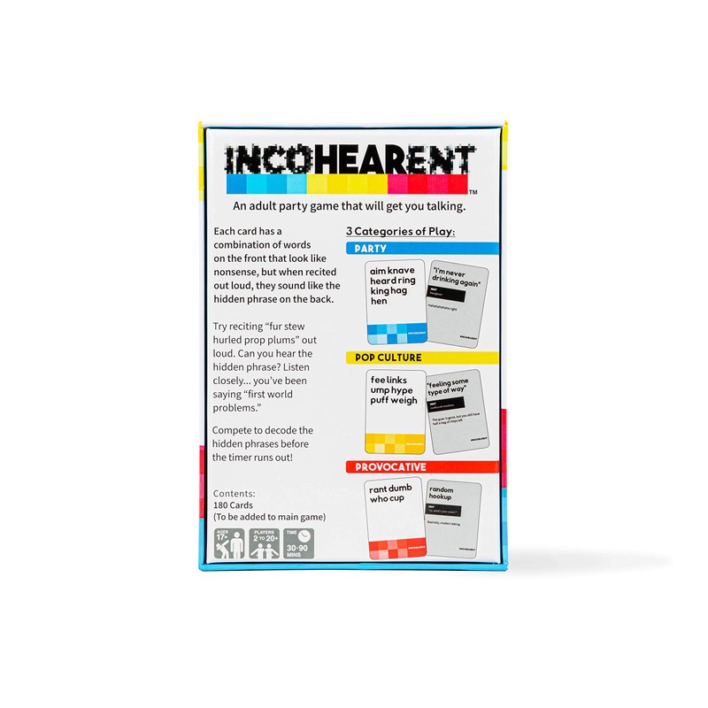 - Don't Forget the original: Requires Incohearent core game to play. This expansion pack is to be added to the original!