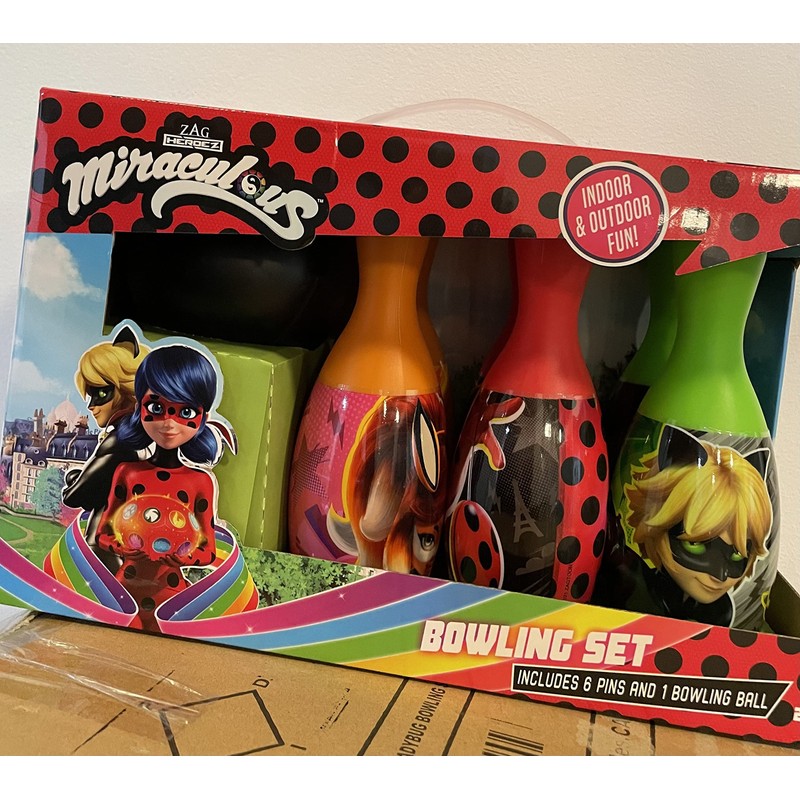- INCLUDED IN THE PURCHASE OF SET OF BOWLING PINS FOR KIDS - Includes 1 Miraculous Ladybug Bowling Set for Kids. The easy to carry and use bowling game comes with 6 pins and 1 bowling ball, and will be a guaranteed success at every birthday party and event. The outdoor and indoor activity bowling kit features full color graphics of your little one's favorite Miraculous superheroes Ladybug, Cat Noir, Rena Rouge, and more!
