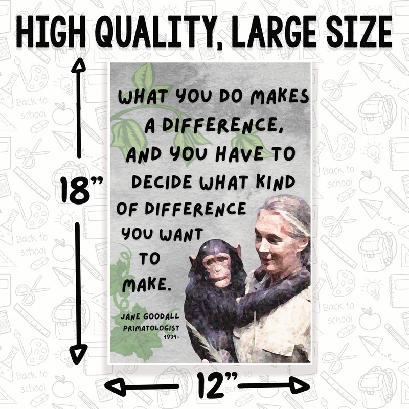 What You Do Makes A Difference Jane Goodall Quote Classroom Poster - 12 x 18 Inch - Science Classroom Decor - Classroom Must Haves - Back To School Decor - CPS0692