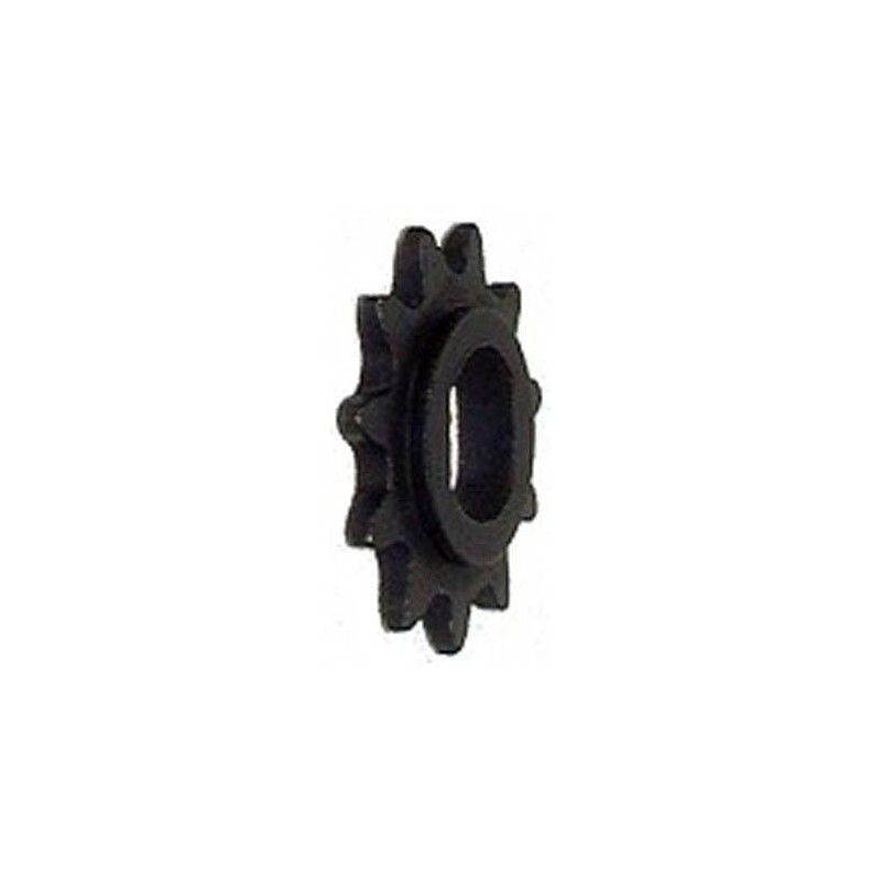 Fits 10mm OD dual-flatted motor shafts with nut and washer on end to secure sprocket in place.