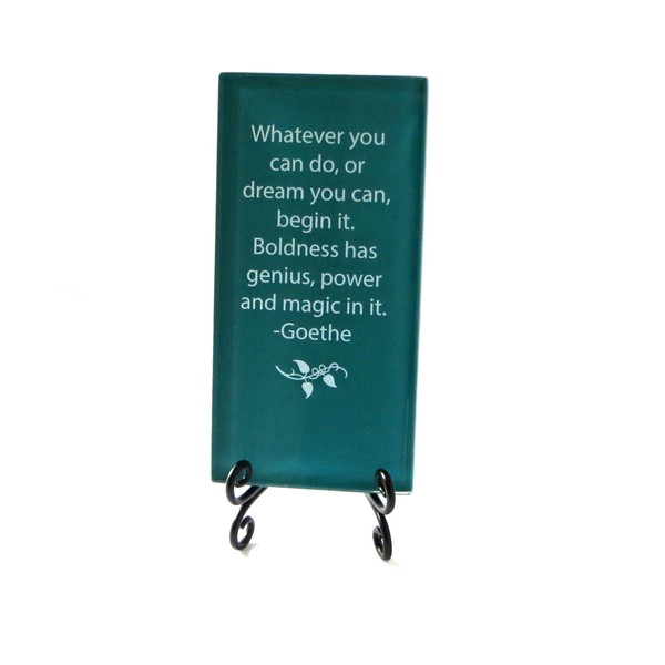 Whatever Sie Können, Oder Dream Sie, Beginnen Können es Inspirierende Glas Plaque. Inspiration und Ermutigung für Ihren Schreibtisch. von Lifeforce Glas. Dark Teal.