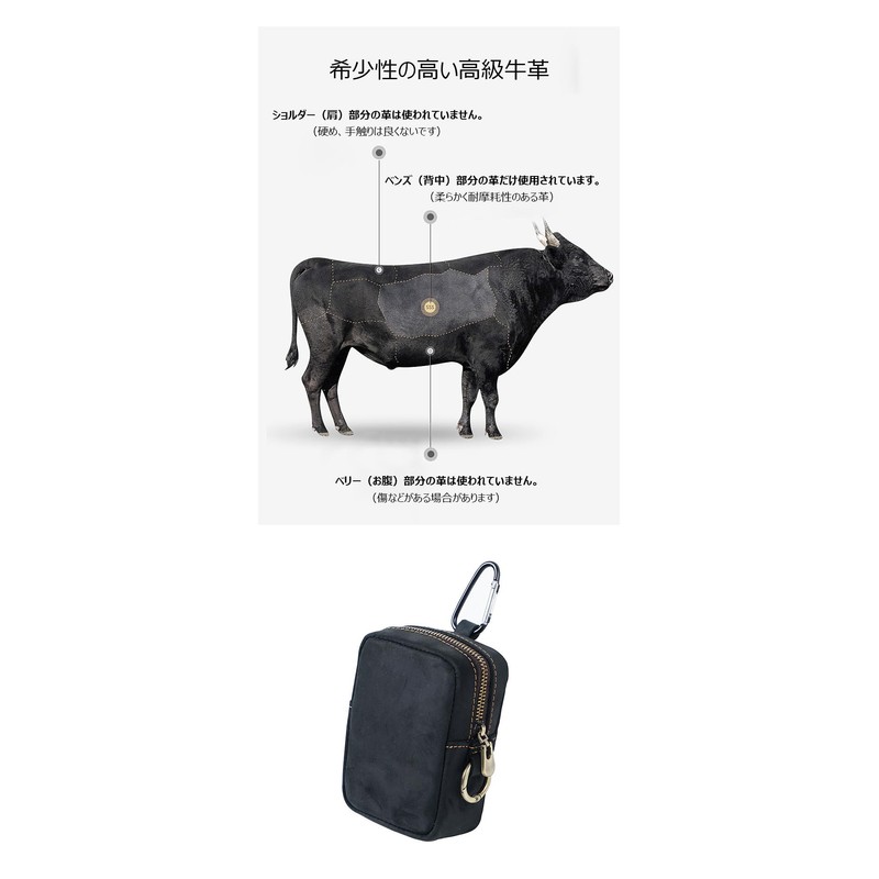 Whatna Ten Naren Thick Hand Cowhide Coin Purse, Coin Purse, 2-Way Mini Sacoche, Carabiner Pouch, Belt Loop, Mini Waist Bag, Genuine Leather, Includes Carabiner, Key Ring, Earphone Storage Case, camel