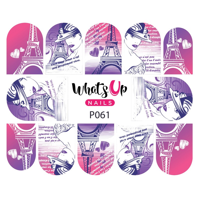 Whats Up Nails - P061 I Heart Paris Water Decals Sliders for Nail Art Design