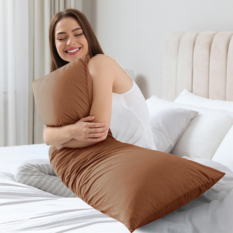WhatsBedding Memory Foam Body Pillow with Breathable Zippered Cotton Cover, Full Body Pillow for Adults, Long Pillow for Sleeping, Firm Breathable Fluffy Supportive-Mocha Brown