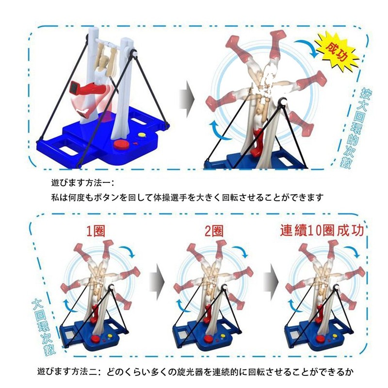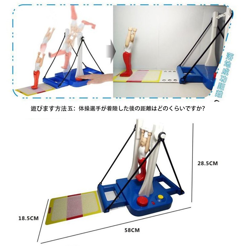 - How to use: Hold the red button and press the red button to activate the athlete. When the button stops pressing, the athlete will stop. Interesting and a little difficult game. Makes gymnastics equipment fun on the table
