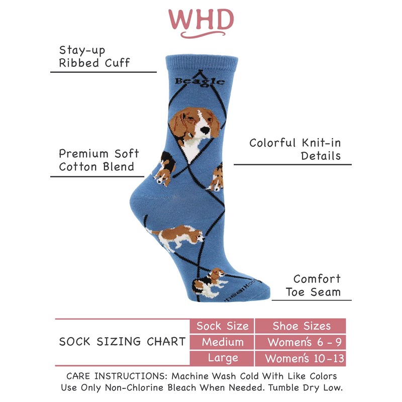 • PERFECT FOR DOG LOVERS - Mischievous and cuddly by nature, the Beagle is sure to melt your heart. Show your devotion for this loyal companion in the WHD crew sock with the beloved Beagle.