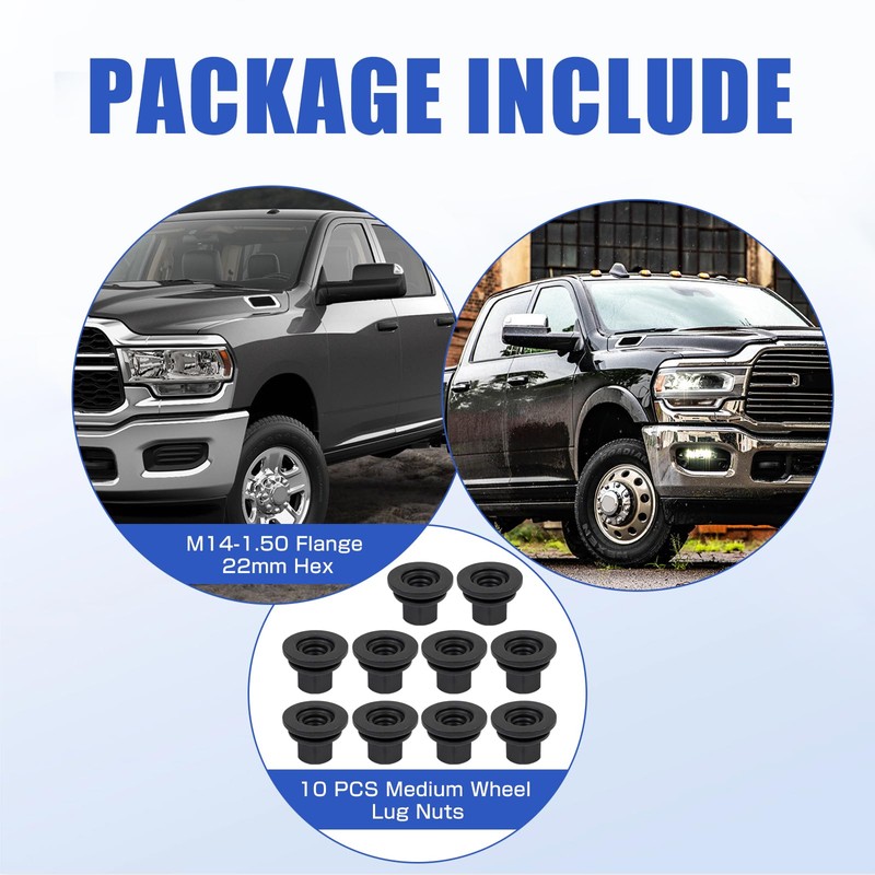 Wheel Lug Nut (OEM Part #6509424AA) Compatible with Dodge Ram 3500/4000/4500/5500 Models (2012-2022) M14-1.50 Flange 22mm Hex 28.5mm Length Replace 611-936 Pack of 10pcs