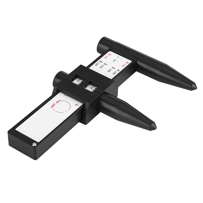 - FONCTIONS: The bolt pattern sliding measuring tool is a convenient tool for measuring PCD data of cars and wheels, which can be used to measure a wheel or turned over to measure studs on a vehicle.